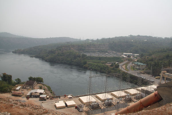 Der Volta-Stausee wird vom Akosombo-Staudamm aufgestaut. Er ist der größte Stausee der Erde und wurde von 1961 - 1966 gebaut.