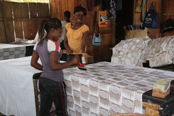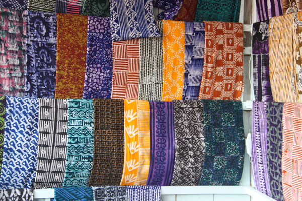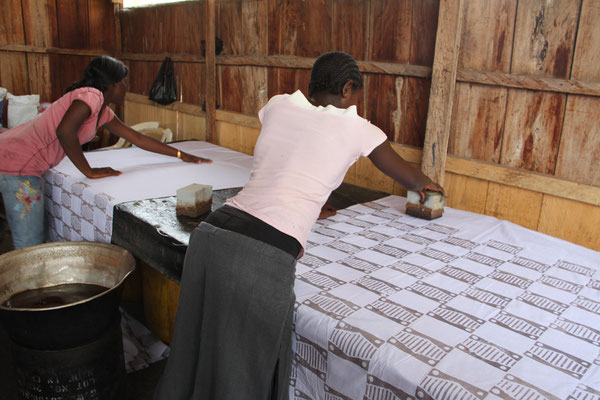 Wir besuchten eine Batikwerkstatt. Hier wurde mit Druckblöcken und Wachs gearbeitet.