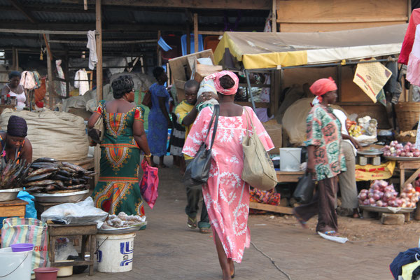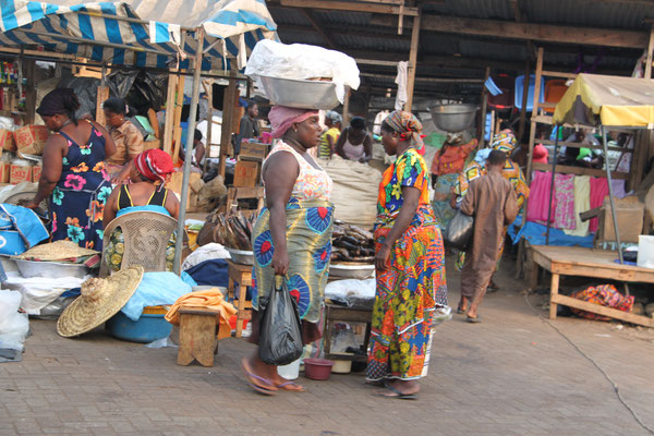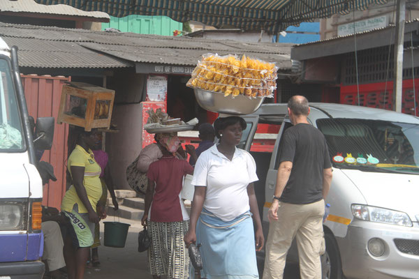 Die Märkte in Ho waren faszinierend. Frisches Obst und Gemüse wurde angeboten. Die farbenprächtigen Kleider der Frauen beeindruckten uns sehr.