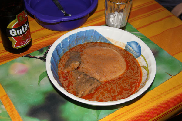 Dann aßen wir unser erstes Fufu, das Nationalgericht aus Afrika.