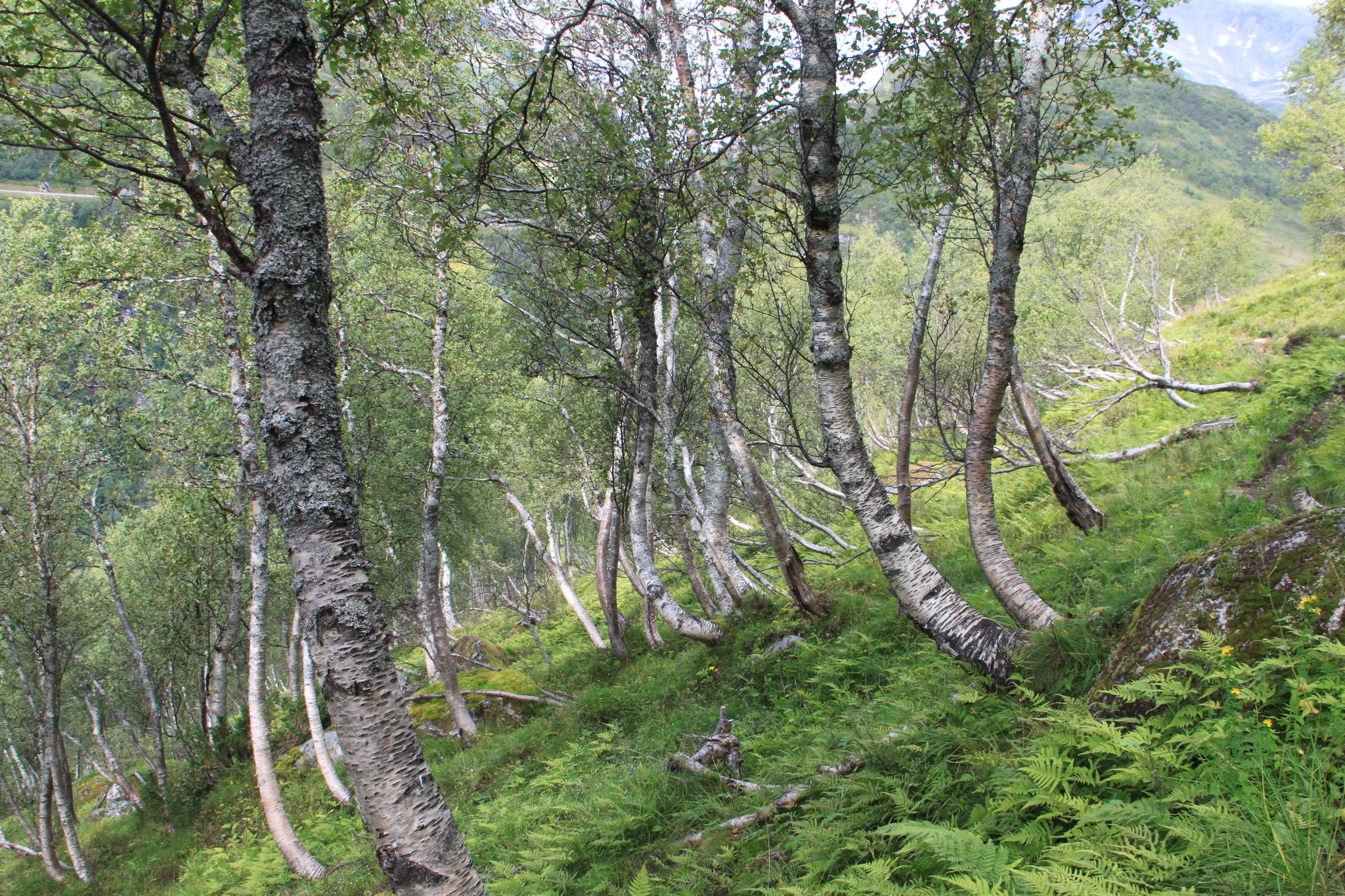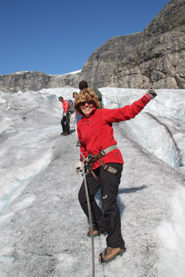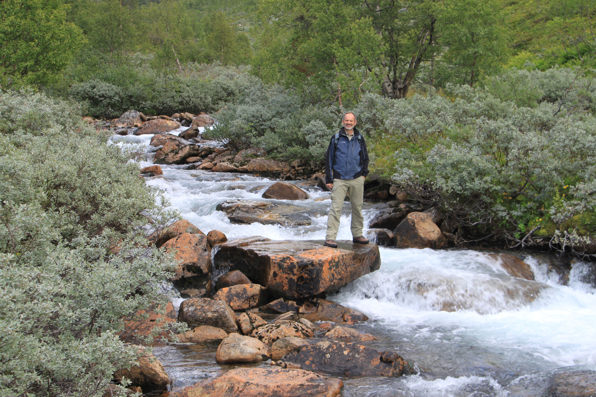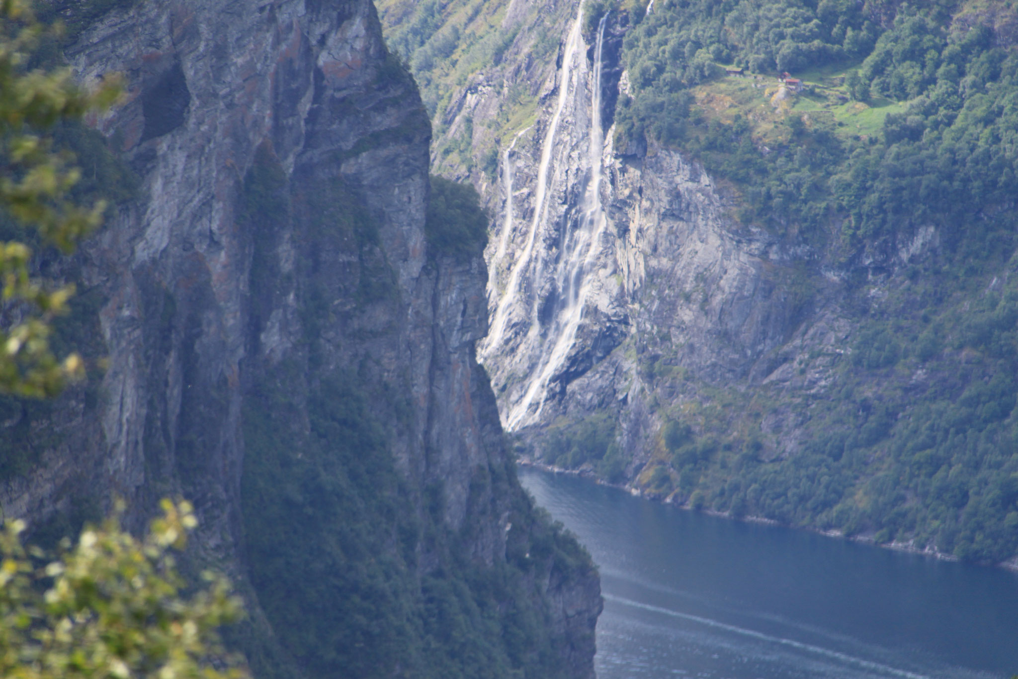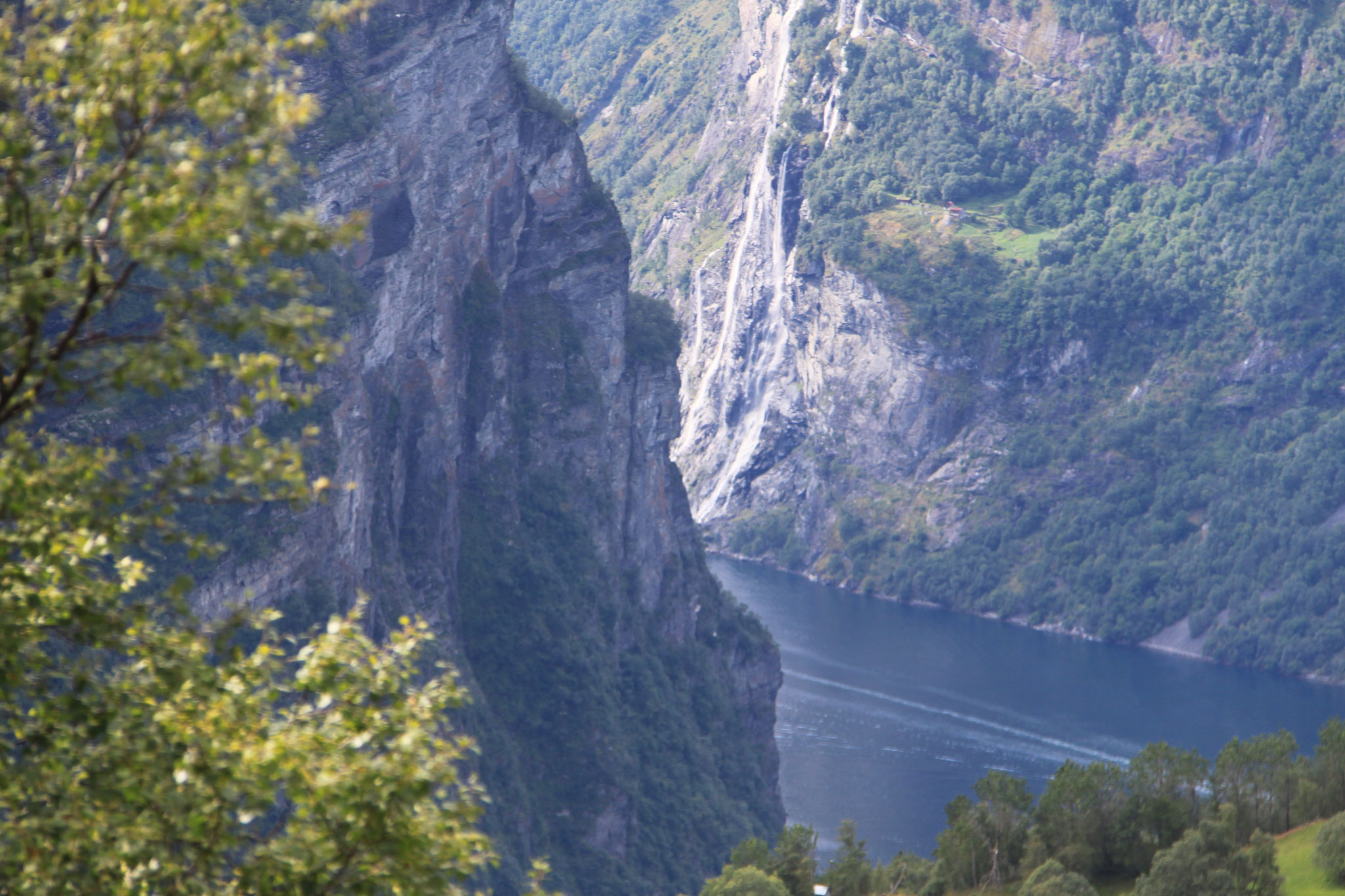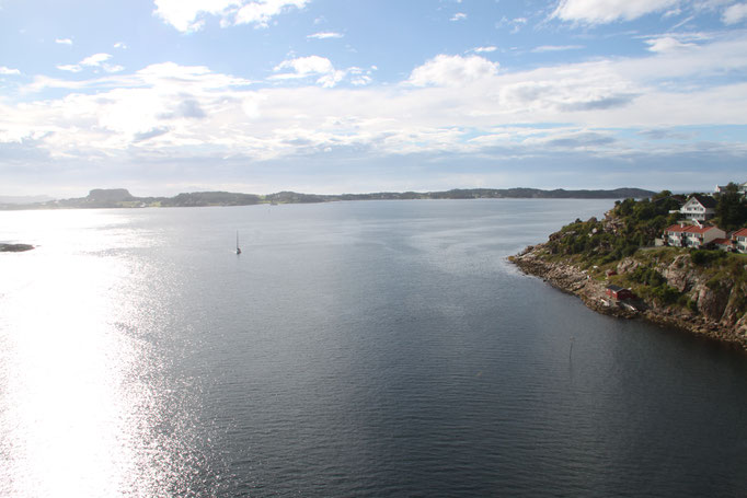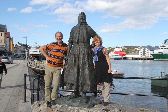 Jetzt geht es weiter zum Trollstigen. Der Trollstigen ist die Strasse nach Geiranger mit 11 Haarnadelkurven, steilen Schluchten und imposanten Aussichten. Auf halber Strecke zur Passhöhe führt eine Natursteinbrücke über den eindrucksvollen Stigfossen. Jede Haarnadelkurve trägt einen eigenen Namen. Die meisten Kurven sind nach dem Vorarbeiter des Arbeitstrupps benannt. Zum Teil ist die Fahrt hier ein richtiges Nevenkitzel. Hier haben wir auch einen Radfahrer getroffen, der auf dem Weg zum Nordkap war, er kam aus Ungarn.