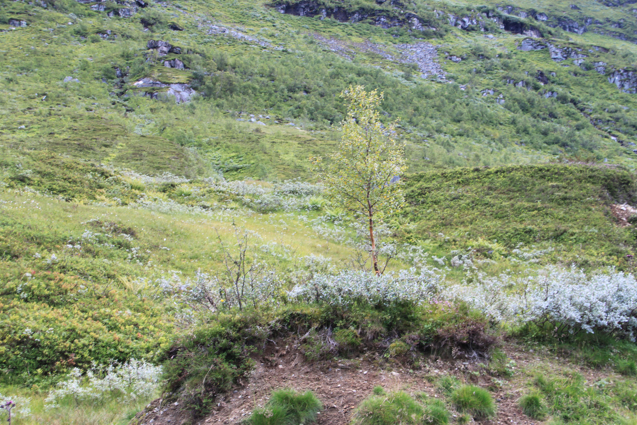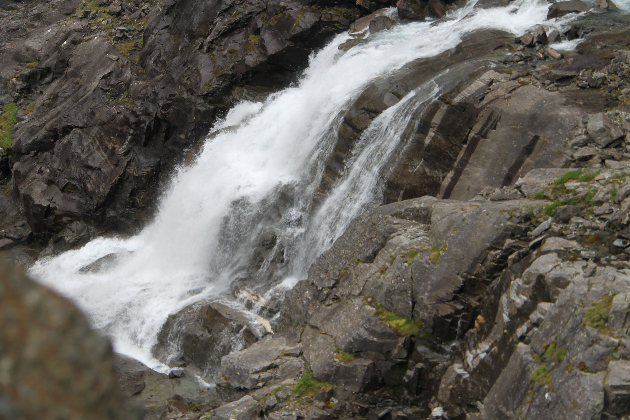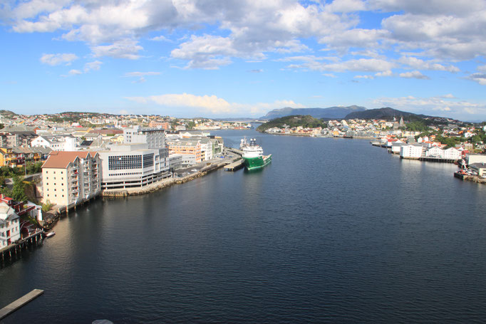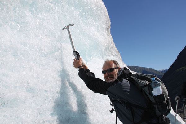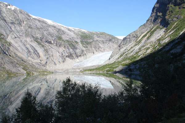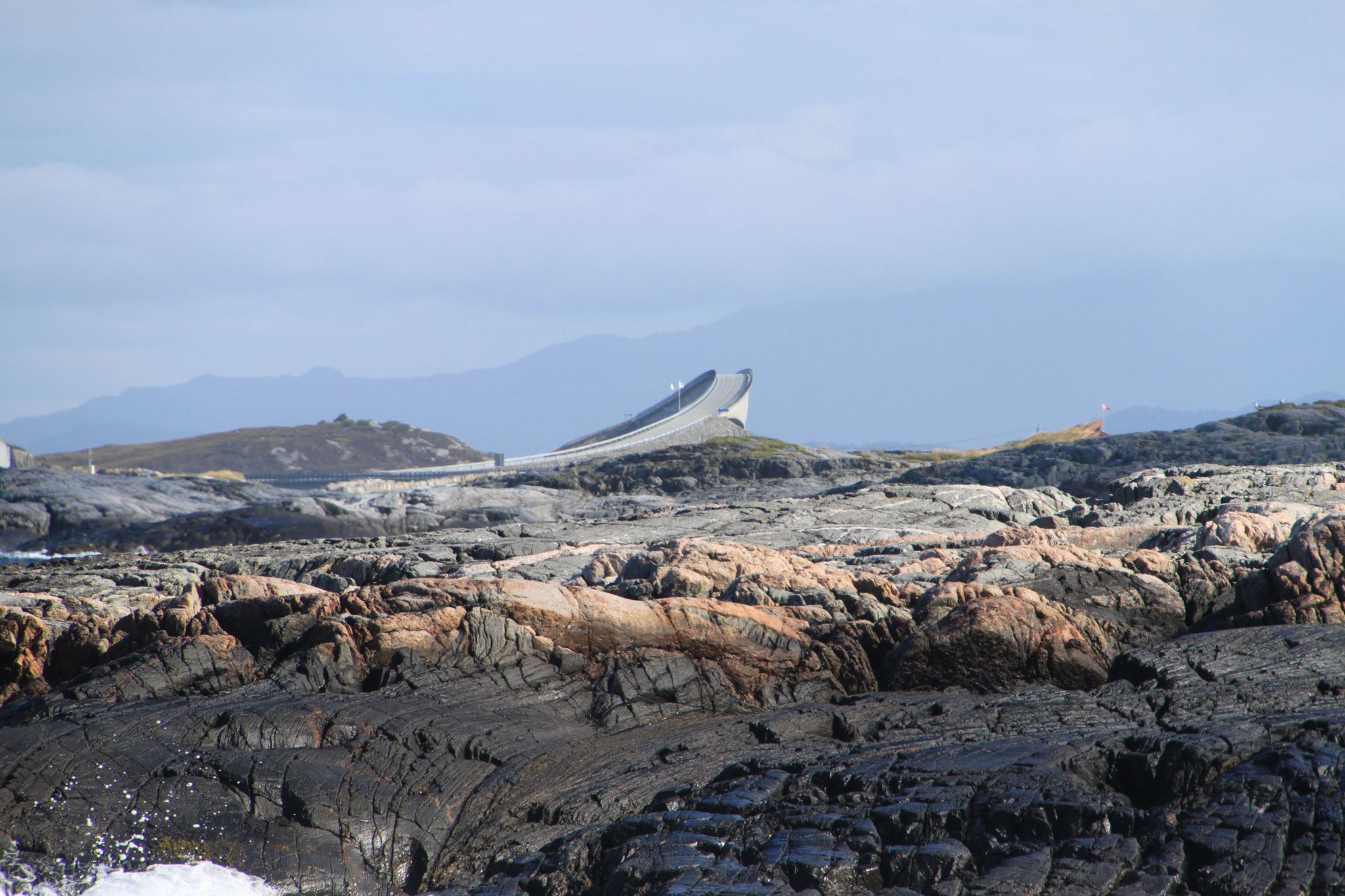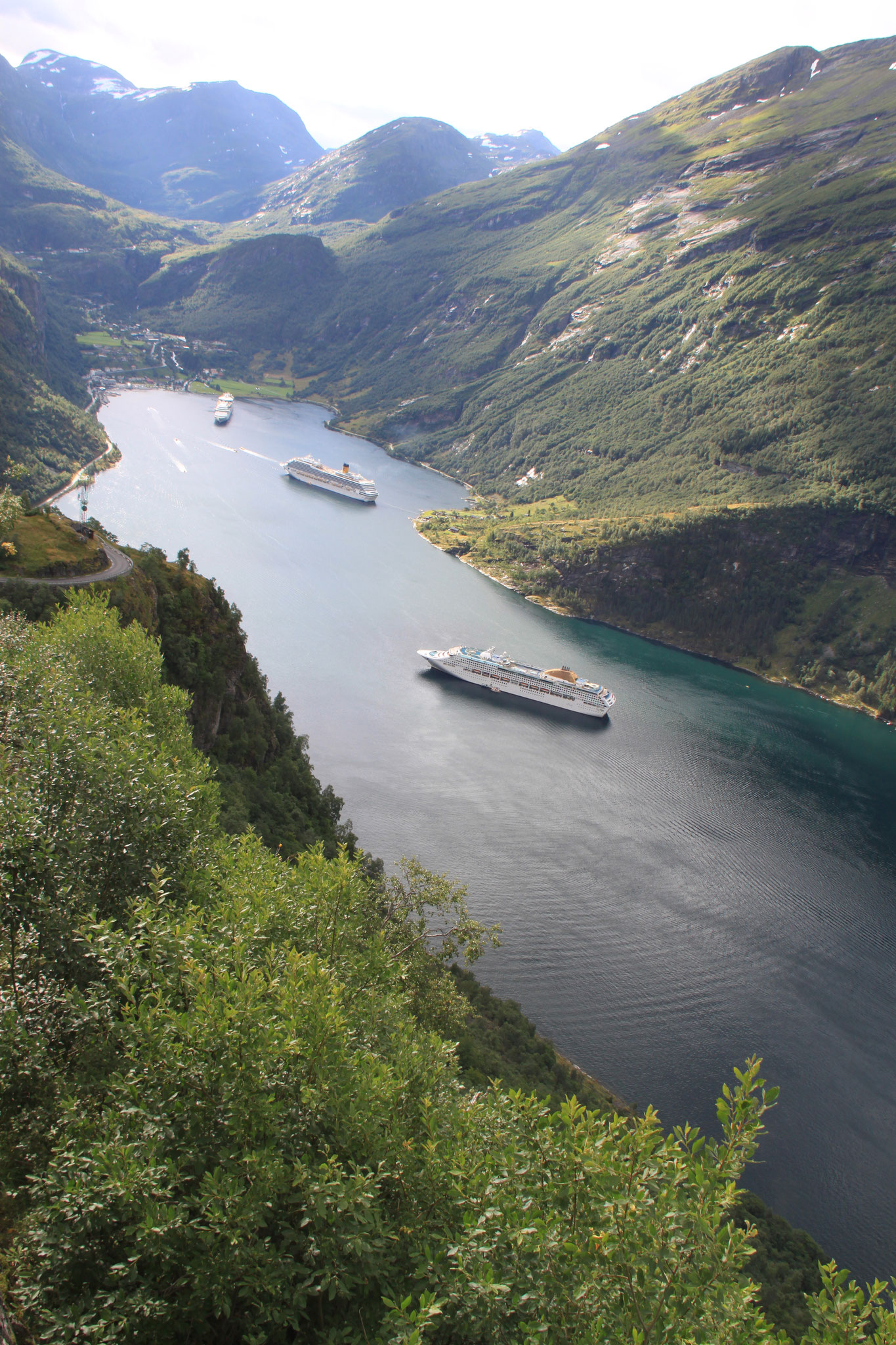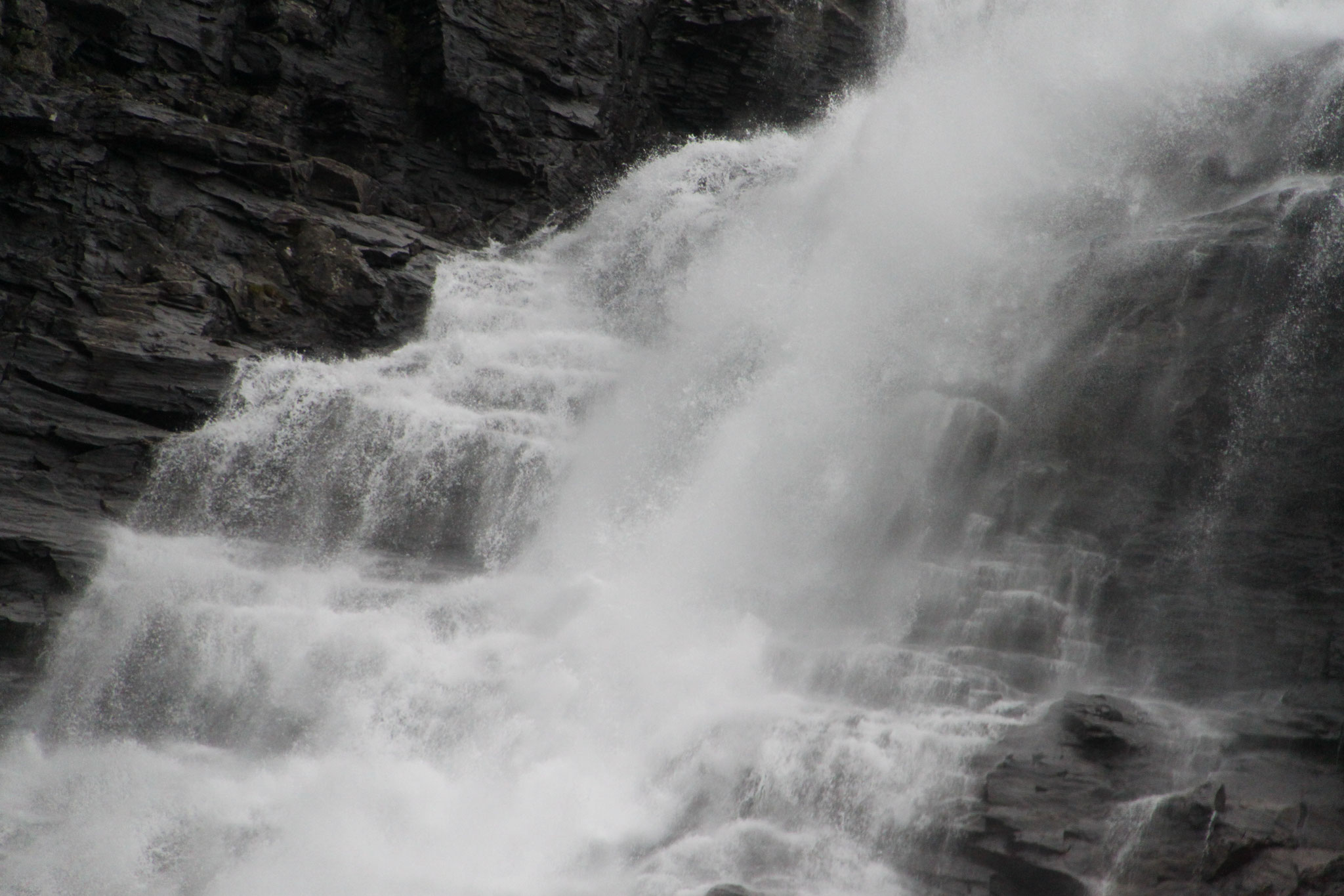Jetzt geht es weiter zum Trollstigen. Der Trollstigen ist die Strasse nach Geiranger mit 11 Haarnadelkurven, steilen Schluchten und imposanten Aussichten. Auf halber Strecke zur Passhöhe führt eine Natursteinbrücke über den eindrucksvollen Stigfossen. Jede Haarnadelkurve trägt einen eigenen Namen. Die meisten Kurven sind nach dem Vorarbeiter des Arbeitstrupps benannt. Zum Teil ist die Fahrt hier ein richtiges Nevenkitzel. Hier haben wir auch einen Radfahrer getroffen, der auf dem Weg zum Nordkap war, er kam aus Ungarn.