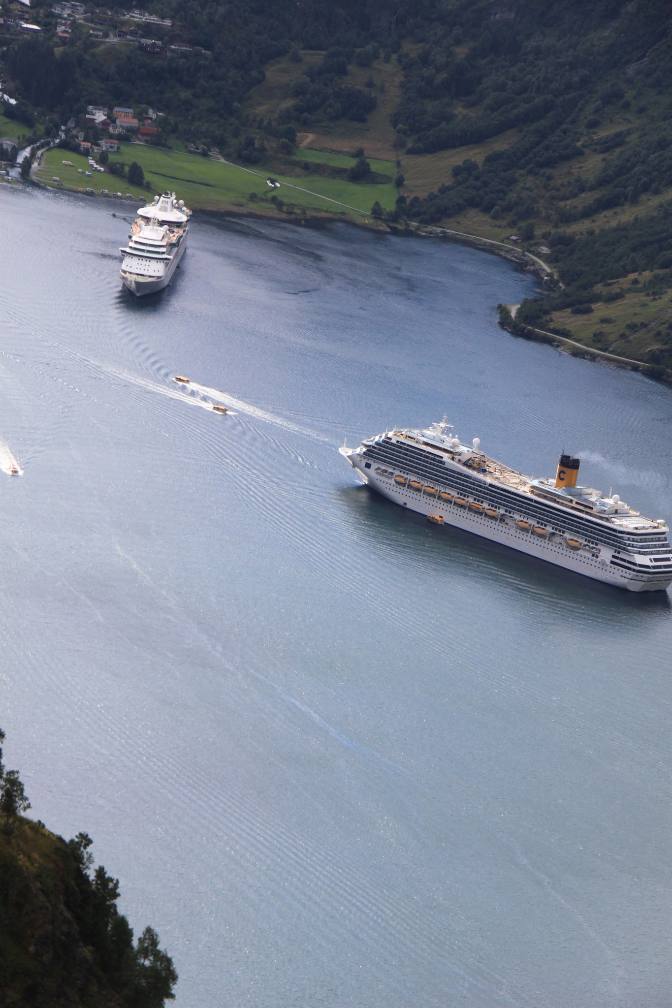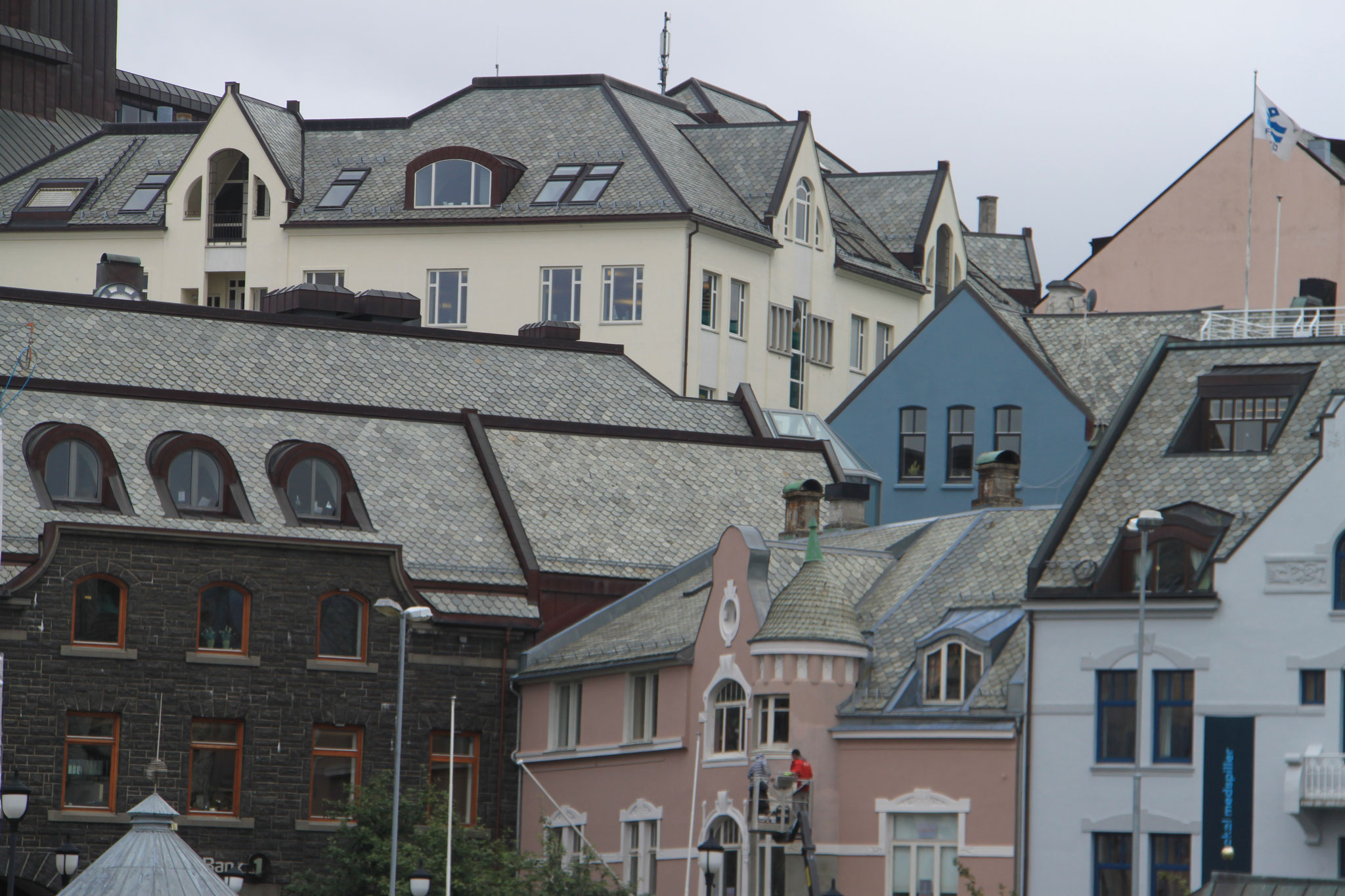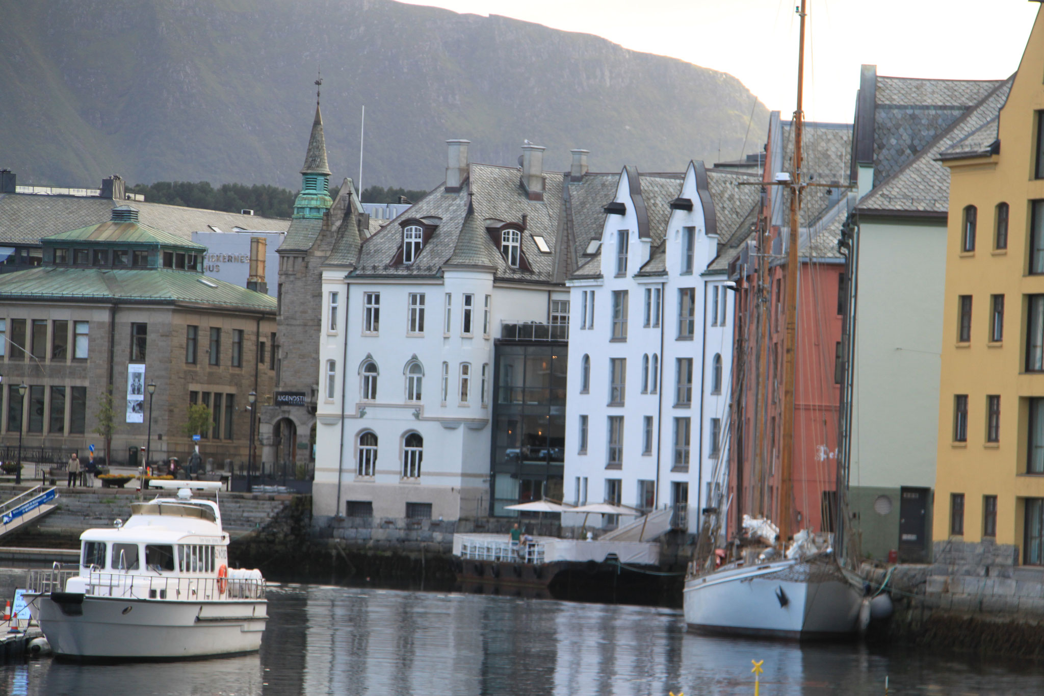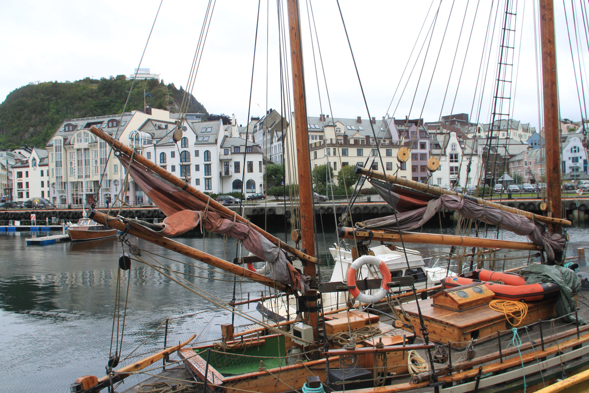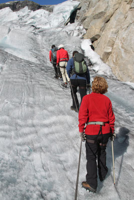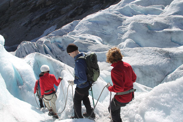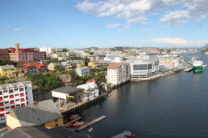 Jetzt geht es weiter zum Trollstigen. Der Trollstigen ist die Strasse nach Geiranger mit 11 Haarnadelkurven, steilen Schluchten und imposanten Aussichten. Auf halber Strecke zur Passhöhe führt eine Natursteinbrücke über den eindrucksvollen Stigfossen. Jede Haarnadelkurve trägt einen eigenen Namen. Die meisten Kurven sind nach dem Vorarbeiter des Arbeitstrupps benannt. Zum Teil ist die Fahrt hier ein richtiges Nevenkitzel. Hier haben wir auch einen Radfahrer getroffen, der auf dem Weg zum Nordkap war, er kam aus Ungarn.
