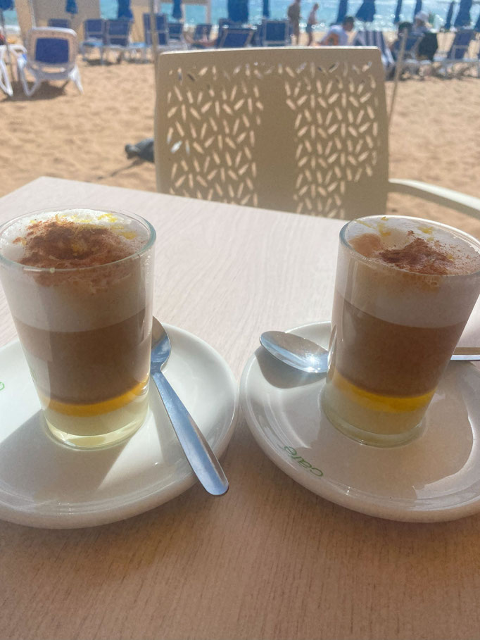 Barraquito ist eine kanarische Kaffeespezialität. Formvollendet türmen sich die verschiedenen Schichten aus Kondensmilch, Likör 43, Espresso und Milchschaum im Glas aufeinander.