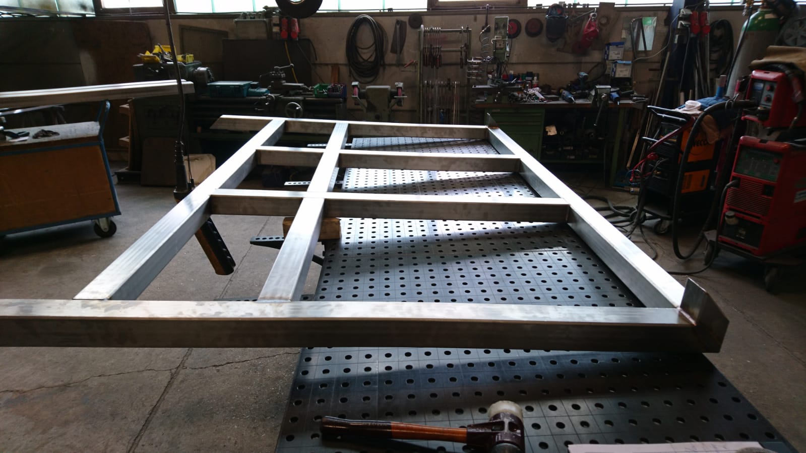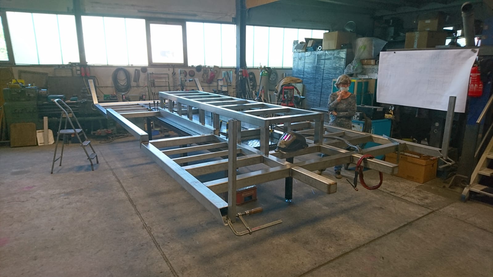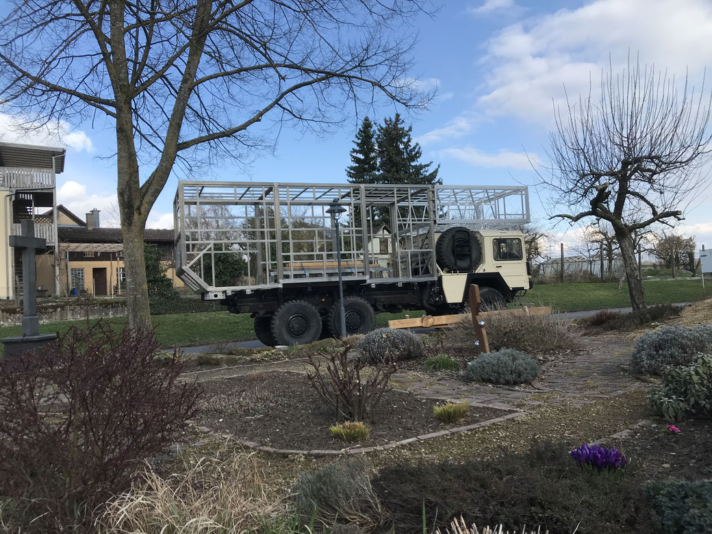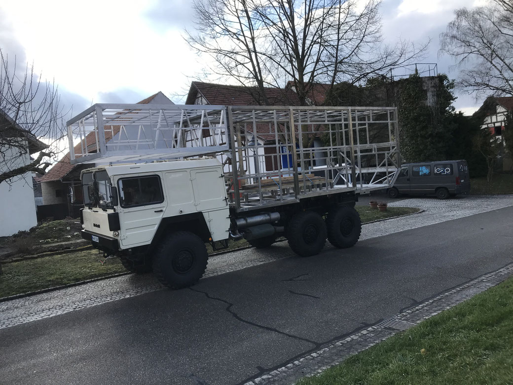 Der Gitterrohrrahmen wird heute zum ersten Mal auf den LKW gebaut.