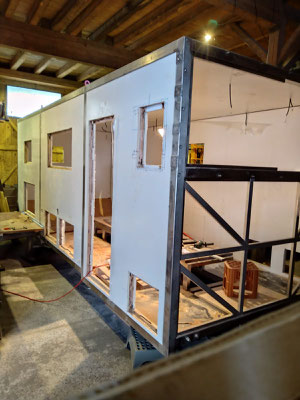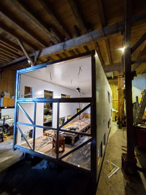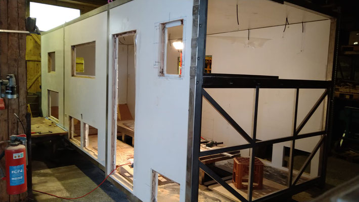 Am 29. Juli 2021 wurden die Wände und Decken für den Gitterrohrrahmen geliefert.