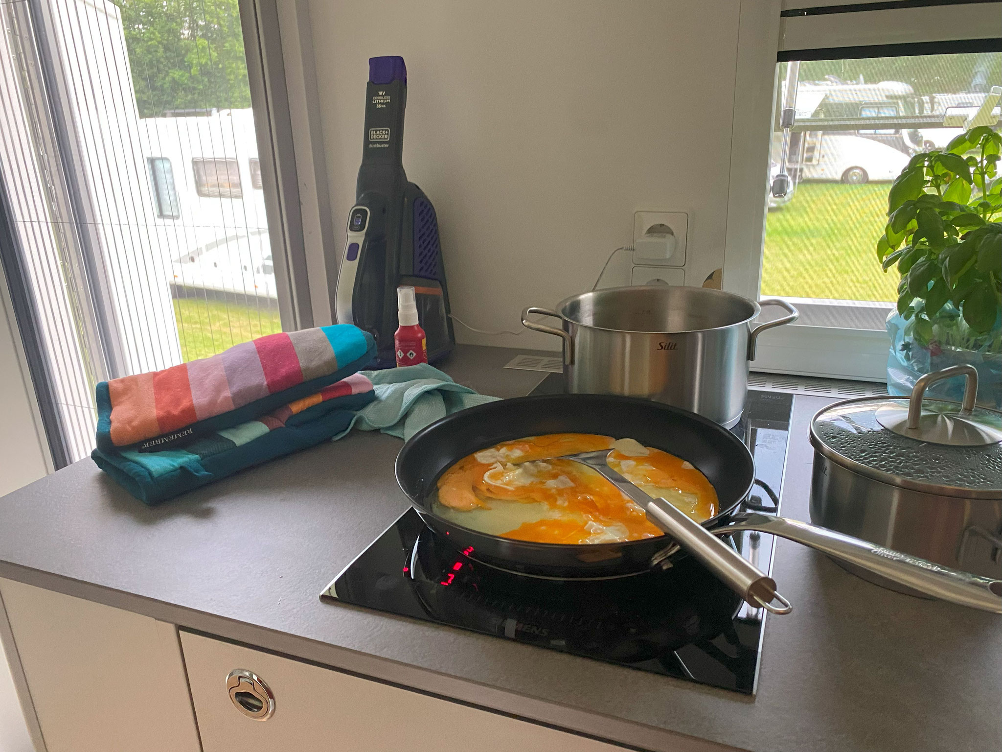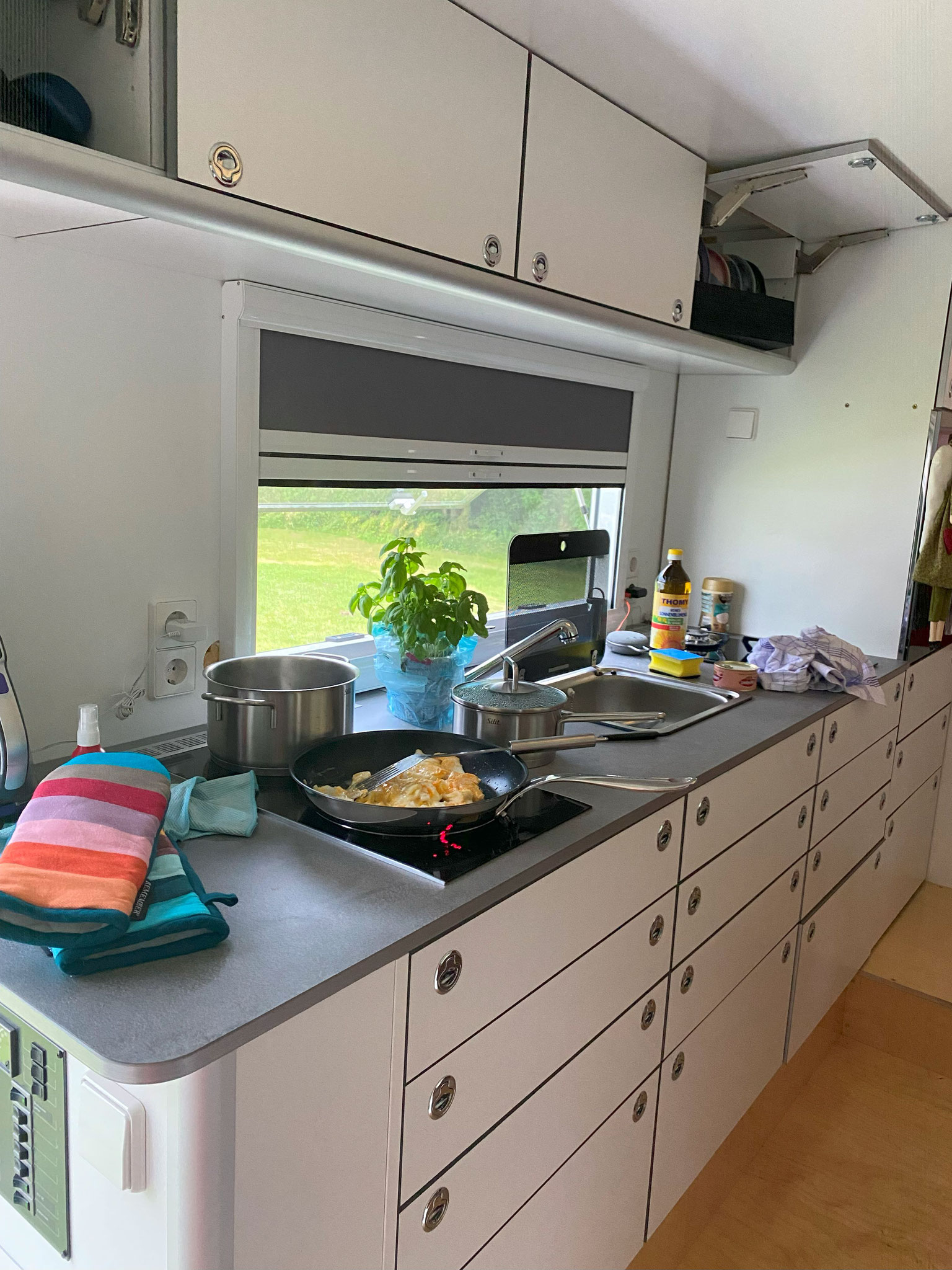 Wir haben einen Induktionsherd, Gasherd und einen Backofen.