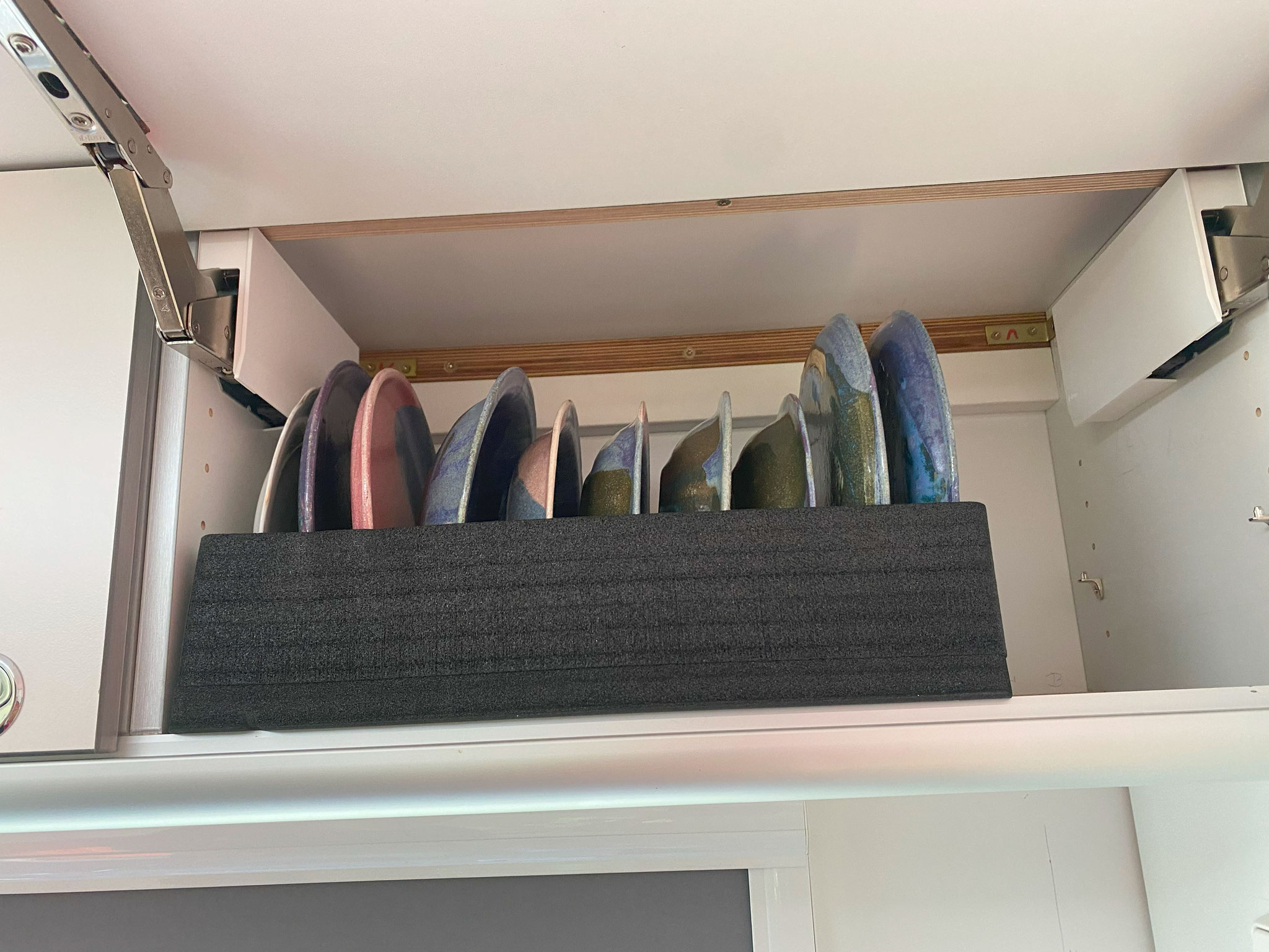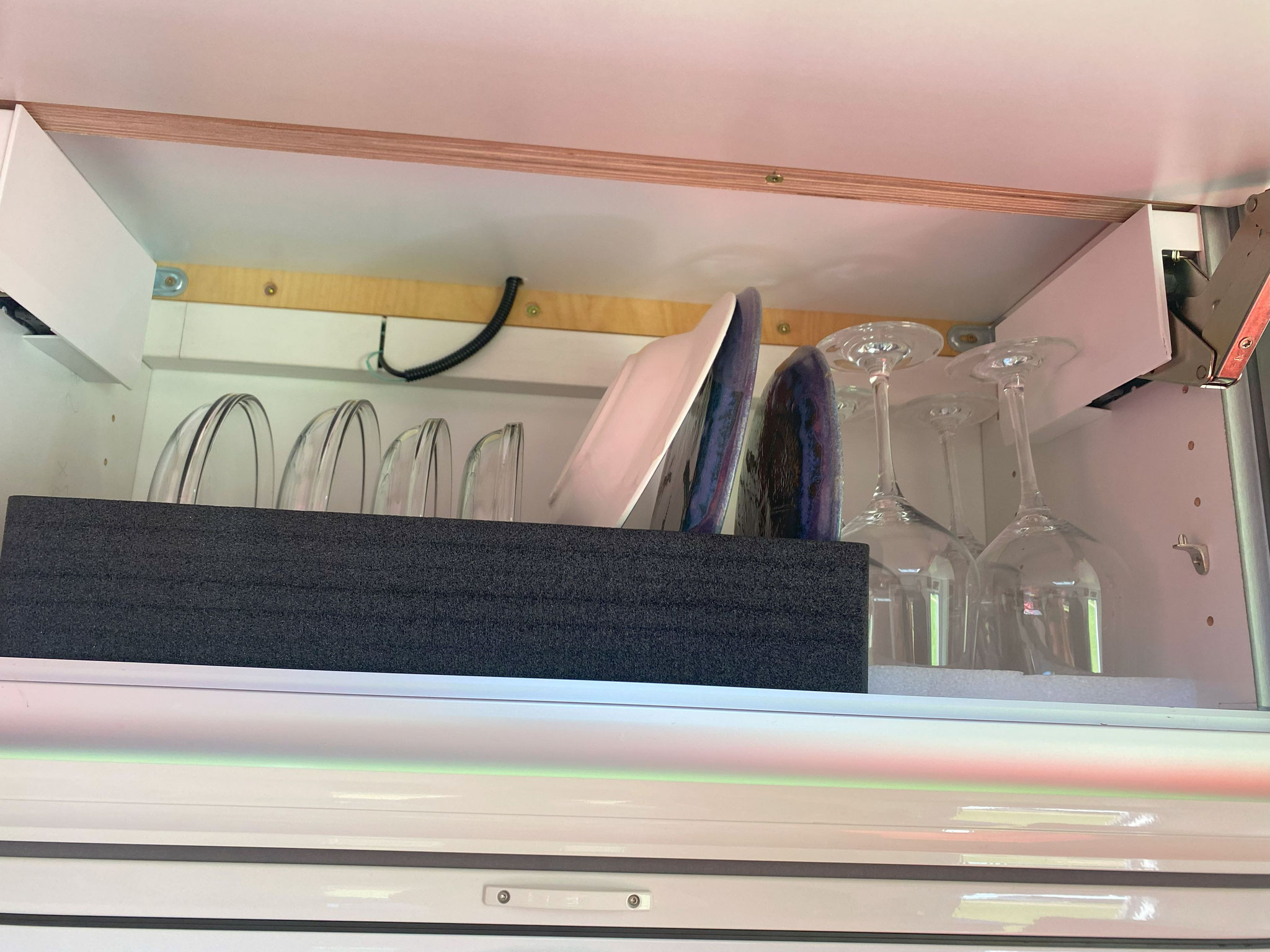 Das Ordnungssystem in den Schränken für Gläser, Tassen, Teller probieren wir noch aus.