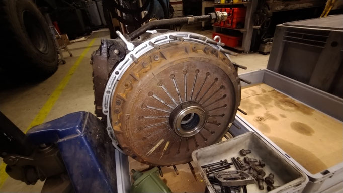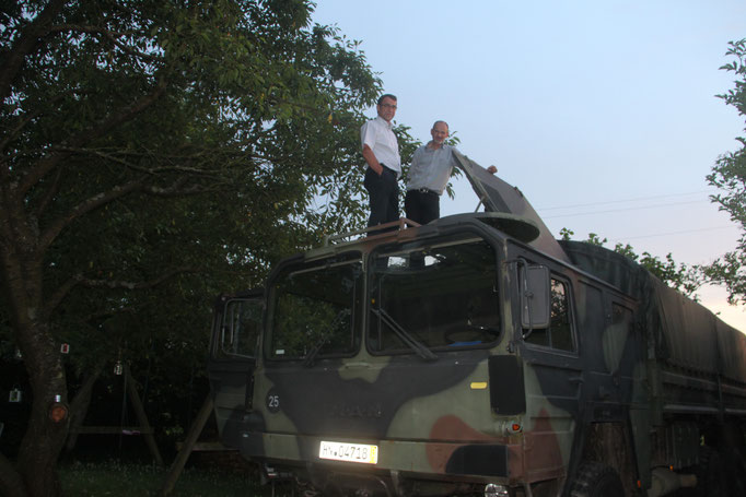 Endlich sind wir soweit, dass das MAN Fahrzeug mit dem Wohnkoffer verbunden wird.