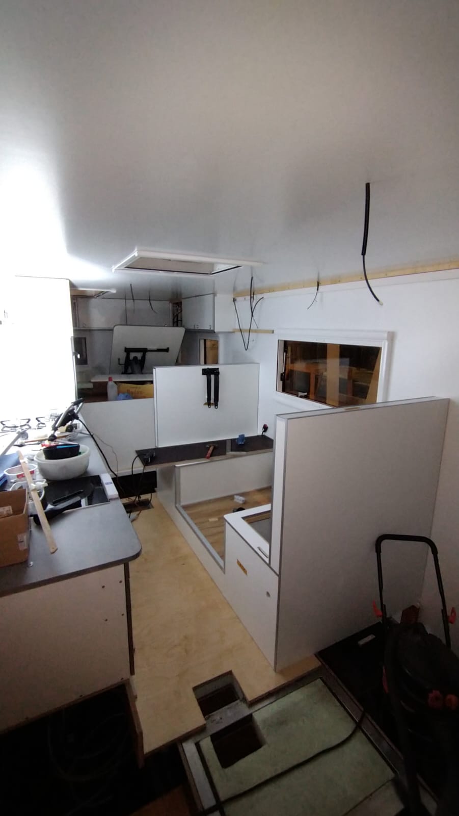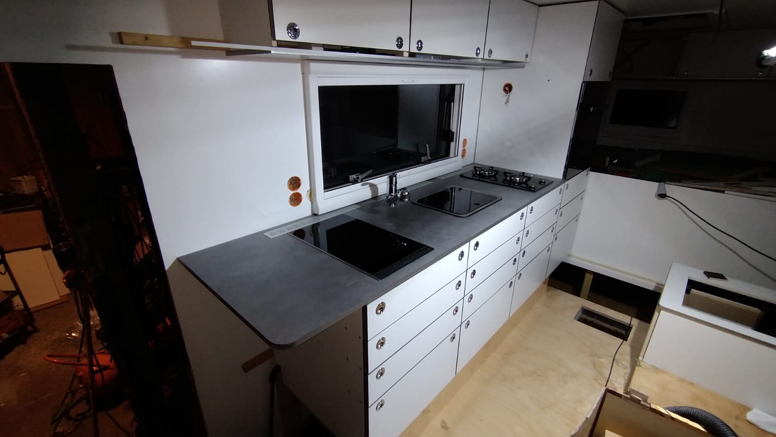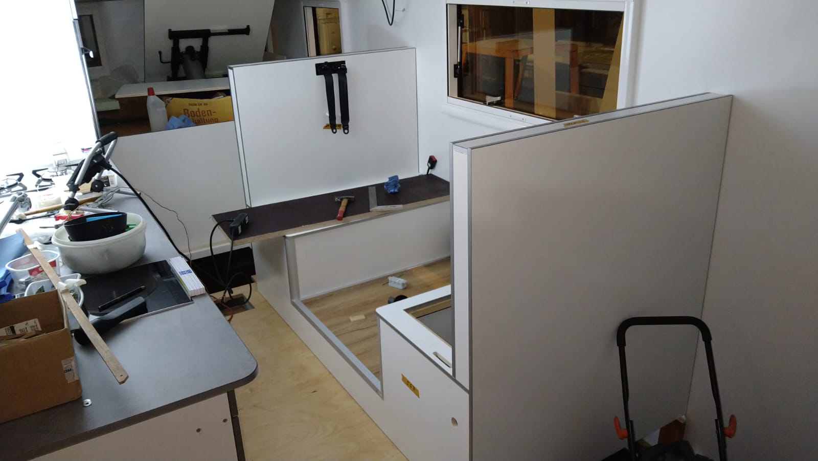 In den letzten Wochen hat Manfred bis jetzt insgesamt 1 Türe, 9 Klappen und 6 Fenster im Wohnkoffer ausgesägt.